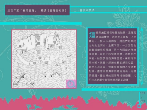 三百年前「看見臺灣」:閱讀《臺灣番社圖》 二、畫風與技法 熙之後各朝代亦有繪製巨幅輿圖上