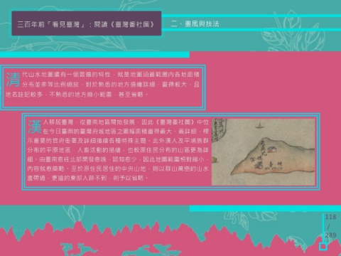 示重要的官府衙署及詳細描繪各種特殊主題。此外漢人及平埔族群