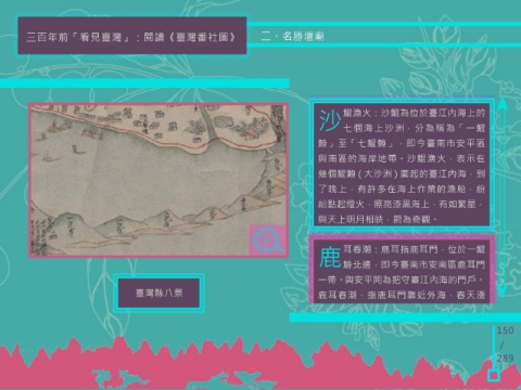 三百年前「看見臺灣」:閱讀《臺灣番社圖》 二、名勝壇廟 區,位於七鯤鯓中最外面的一鯤