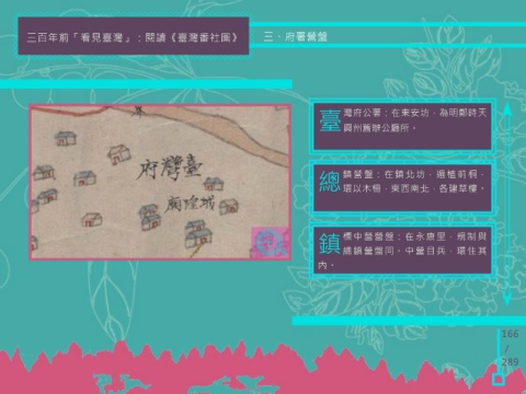 三百年前「看見臺灣」:閱讀《臺灣番社圖》 三、府署營盤 單位,在西定坊,西向,為明鄭時