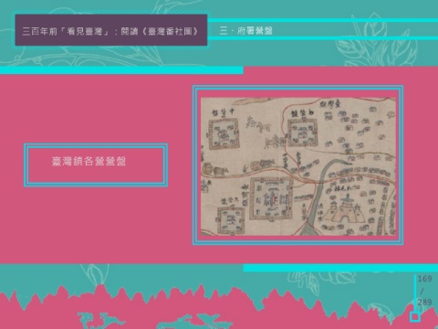 三百年前「看見臺灣」:閱讀《臺灣番社圖》 三、府署營盤 臺灣鎮各營營盤 169 / 289