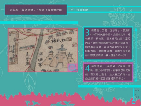三百年前「看見臺灣」:閱讀《臺灣番社圖》 四、河川溪流 . 大洲溪:在洲仔尾與北路營界之間,