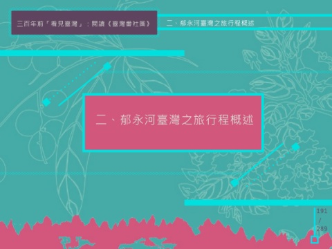 三百年前「看見臺灣」:閱讀《臺灣番社圖》 二、郁永河臺灣之旅行程概述 二、郁永河臺灣之旅行程概述 191 / 289