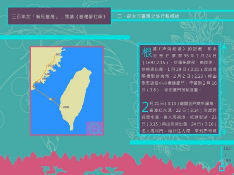 三百年前「看見臺灣」:閱讀《臺灣番社圖》 二、郁永河臺灣之旅行程概述