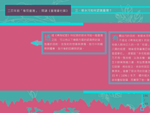 透 過《裨海紀遊》所記錄的郁永河這一趟臺灣 有 關此行的目的,對郁永河來說原本只是一趟單純的公務出差,