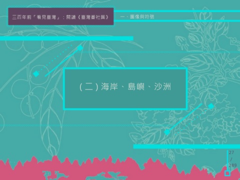 三百年前「看見臺灣」:閱讀《臺灣番社圖》 一、圖像與符號 ( 二 ) 海岸、島嶼、沙洲 27 / 289