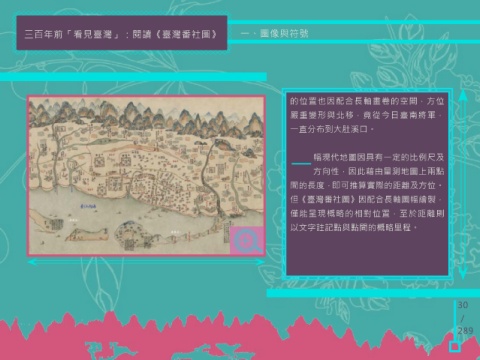 三百年前「看見臺灣」:閱讀《臺灣番社圖》 一、圖像與符號 臺南府城的外海,放大畫出一系列