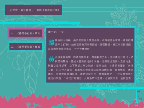 等。《臺海使槎錄》八卷中,內分《赤嵌筆談》(四卷)、《番俗六考》(三 289
